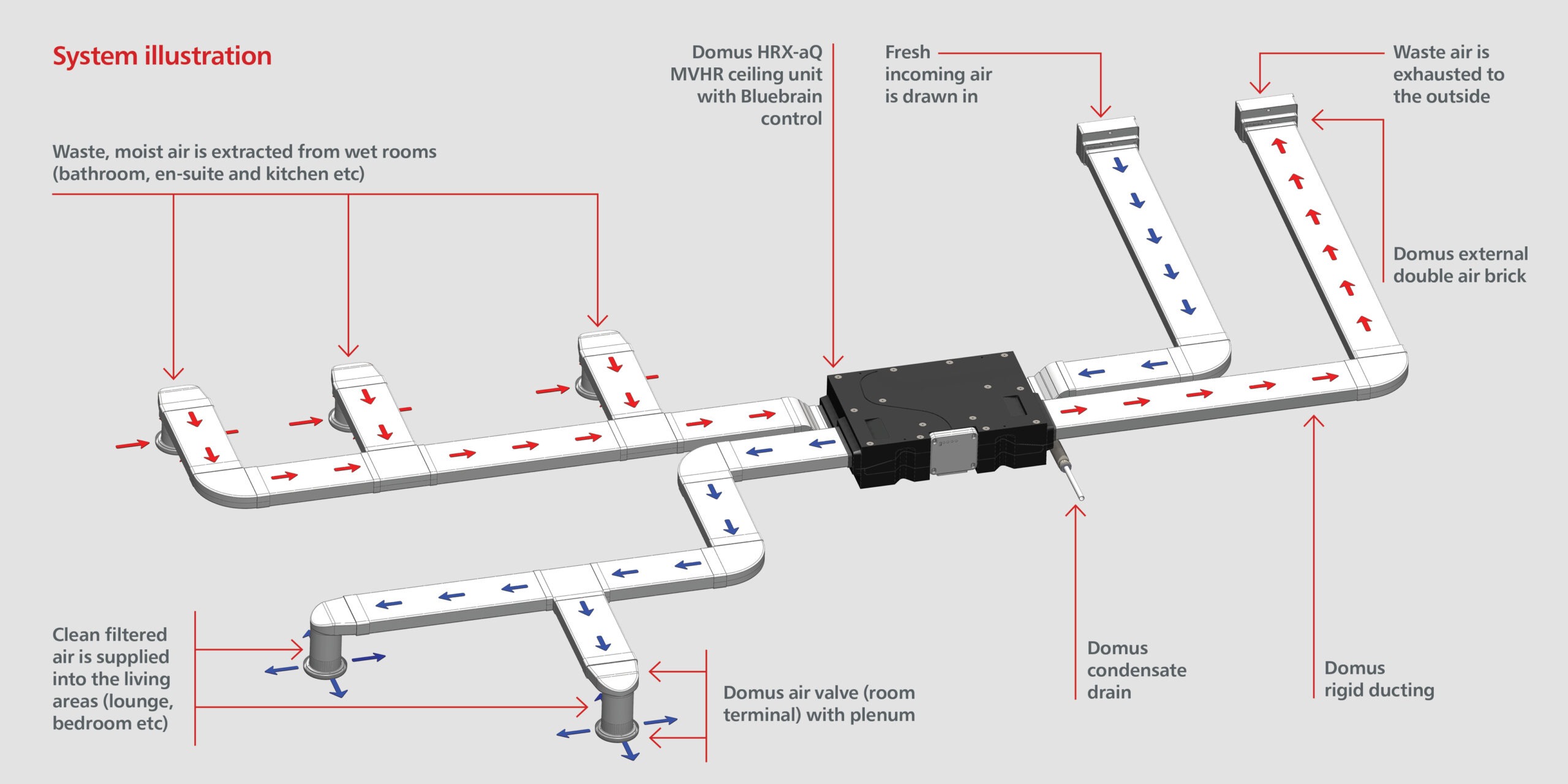 Enables contractors to deliver quicker installation with minimum hassle. Designed to be the smallest void mounted unit of its type, the HRX-aQ is compact and light enough to be easily installed on a ceiling, leaving space in areas such as utility rooms free for other home appliances, including washing machines and HIU (Heat Interface Units). The HRX-aQ has been designed with rectangular socket connections (204x60mm) which enable it to interlock and fit directly to 204x60mm rigid duct.